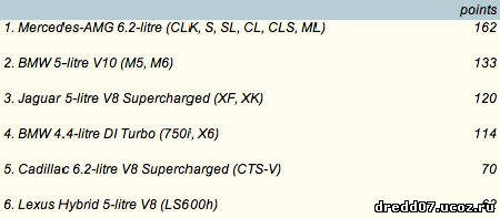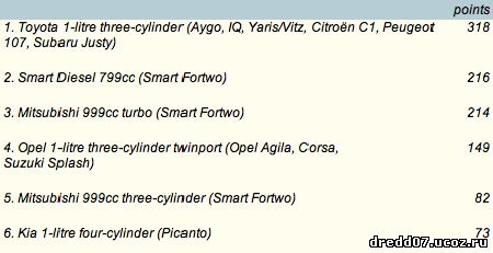 Вопрос классика о судействе в нашем случае не останется без ответа. Судьями выступили 65 журналистов из 32 стран мира, которые распределили определенное количество баллов между пятью понравившимися вариантами. Всего в распоряжении каждого представителя было 25 баллов, из которых один двигатель максимально мог получить лишь 15 баллов, а минимально – один. Заметим, что ничейных результатов в данном случае быть не должно.